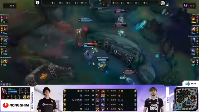 04:28:01Das Spiel beginnt, wird aber sofort von Ablenkungen überschattet. Der Spieler von Big auf Poppy scheint AFK, was zu Spekulationen führt. Gleichzeitig wird die Yuumi von Team Orange Gaming thematisiert und als 'grauenhaft' bezeichnet. Die Konzentration scheint auf ein ungewöhnliches Ashe-Seraphine-Setup gelegt zu sein, während das Team versucht, sich auf das Spielgeschehen zu konzentrieren und der AD-Carry Kaiser anfängt, Ryuk im Lane-Phase zu dominieren.