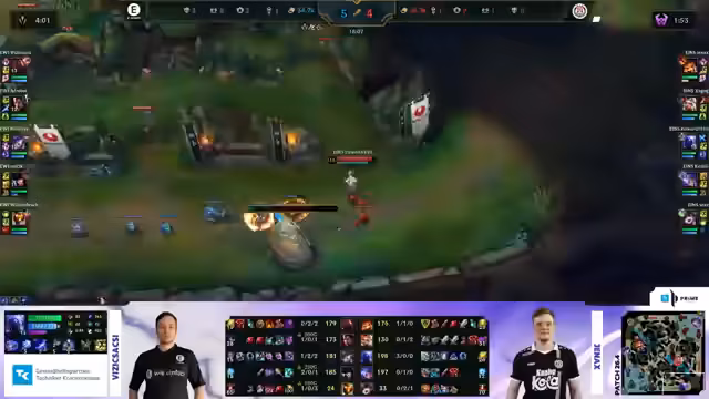 01:52:17Evi entscheidet sich bewusst den Herald zu opfern, um einen Fokus auf die Botlane zu legen und First Tirid zu sichern. Obwohl der Plan nicht vollständig aufgeht, erhält Evi dennoch Bonus-Gold und hat damit eine solide frühe Grundlage. Das Spiel bleibt dabei ausgeglichen, und das Team nutzt den Vorteil sofort, um den ersten Drake ins Visier zu nehmen. Die Item-Builds der Carries sind noch im Aufbau, und es gibt bereits erste Überschneidungen bei den Item-Pathings der gegnerischen AD-Carries, was deren relative Stärke beeinflusst.