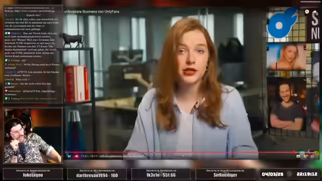 03:13:18Es wird sich von den Zuschauern verabschiedet und darauf hingewiesen, dass man keine Trinkgelder benötigt, da die Arbeit trotzdem erledigt wird. Es wird angekündigt, dass am Donnerstag ein neuer Eisberg auf dem Eisbergkanal erscheinen wird, der sich mit nationalen und nationalistischen Vorstellungen Deutschlands auseinandersetzen wird. Es wird darauf hingewiesen, dass dies für einige schmerzhaft sein könnte. Es wird angekündigt, dass es am Sonntag keinen Stream geben wird, stattdessen aber am Montag um 20 Uhr. Es wird überlegt, wen man jetzt raiden soll und festgestellt, dass Carina Push gerade ein Video von einem schaut. Es wird sich von den Zuschauern verabschiedet und auf ein spannendes soziologisches Erkenntnis-Video auf dem Zweitkanal hingewiesen.