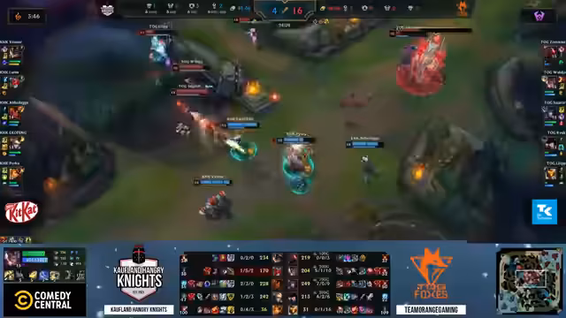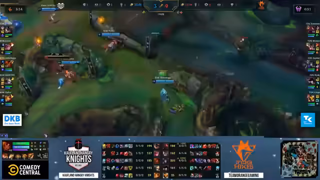 03:44:32Ein katastrophaler Start für Team Orange Gaming. Ihre Caitlyn/Leona-Botlane, die als Win-Condition gedacht war, wird frühzeitig zerschmettert. Nach dem First Blood für Kaufland entwickelt sich das Spiel zu einer unüberwindbaren Hürde. Der Goldvorteil für Kaufland wächst rapide an, während der Fokus auf die Botlane die gesamte strategische Flexibilität des Teams zerstört.