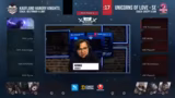 04:03:02Kaufland verliert das letzte Spiel mit einem klaren Goldunterschied und scheidet somit mit 0-4 aus dem Turnier aus. Die Kommentatoren bedauern das, da die Mannschaft laut Kommentar knapp und unglücklich gespielt hat. Die Playoffs-Plätze sind nun fest: One-Man-Army führt die Gruppe B an, gefolgt von Eintracht Spandau und Team Orange Gaming. Die Auslosung für die K.o.-Phase wird angekündigt.