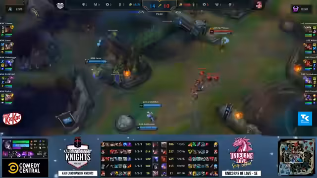 02:08:30Unicorns verschenchen eine riesige Chance. Sie committen einen Engage auf Lurox und lassen sich komplett auseinandernehmen. Kaufland gewinnt den Fight und ist wieder im Spiel. Nach einem weiteren, vermeidbaren Ace für Kaufland ist das Spiel praktically entschieden. Ein weiterer Barondiebstahl durch Unicorns wendet das Spiel jedoch zum letzten Mal zu ihren Gunsten.