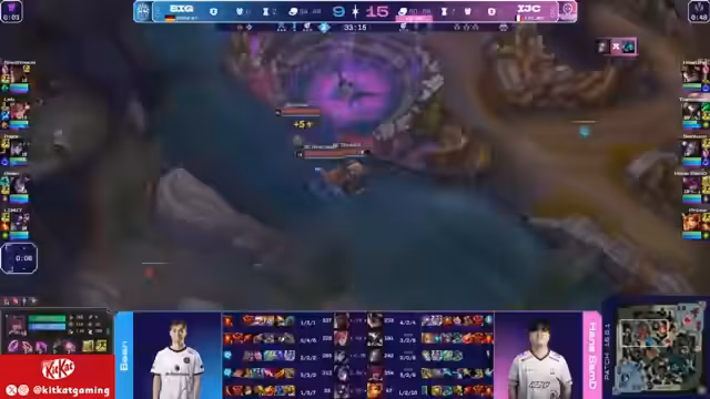 04:35:55Das Comeback von BIG wird zunichtegemacht, da die wenigen Gewinne nicht nachhaltig sind. Das französische Team zeigt eine überlegene Teamkommunikation undTiming. Mehrere Fights gehen an ECJC, da BIGs Schaden ausreicht und CC-Effekte perfekt koordiniert werden. Der Goldunterschied steigt wieder auf über 2500 an und BIG kann dem Druck der gegnerischen Hypercarries Varus und Viktor kaum standhalten.