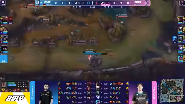 00:58:30EVI gerät unter Druck, nachdem Rocklo in einem Vorstoß seinen Teleport verliert. Die Nightbirds erkennen die Chance und konzentrieren sich erfolgreich auf das Zerfallen der Seitenlinien. Sie stehlen Barone und richten erheblichen Schaden an, während EWI ohne Teleporte keine effektiven Antworten auf die Seitendruck-Strategie hat. Das Spiel gerät für EWI in eine kritische Phase, in der jede Entscheidung das Spiel entscheiden kann.