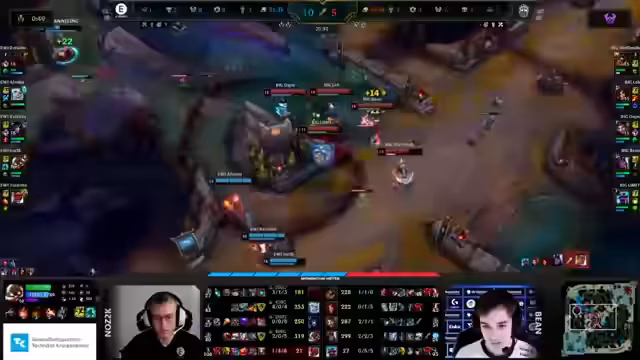 05:54:54Big dominiert das Spiel und zwingt Evi langsam in die Knie. Die Spannungsblasse platzt, als Evi keine Konterstrategien mehr findet und technische Probleme bei Rocklo die Top-Lane erschweren. Evi wird in Einzelteile zerlegt, während Big das Spiel kontrolliert. Die Teamkämpfe werden für Evi ungewinnbar, und Big nutzt Side-Lane-Dynamik und Langzeittaktiken wie Wave-Denying aus, um ihren Vorteil auszubauen.