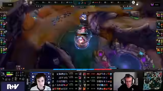 03:11:21Rebels spielt ein sehr starkes V-Game und nutzt seine Early-Item-Spikes, um kontinuierlich Druck aufzubauen. Allerdings zeigt sich eine kritische Schwäche, als Funky, der ADC von Kaufland, trotz starker Positionierung zu unvorsichtig agiert und leicht besiegt werden kann. Dies führt zu einem entscheidenden Wendepunkt im Spiel.