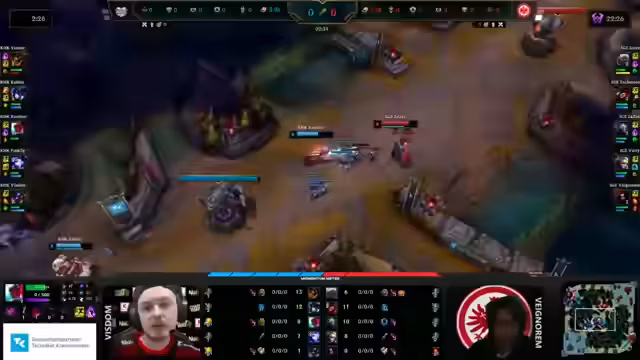 01:10:49Das Spiel entwickelt sich mit immer wieder kehrenden Teamkämpfen und wichtigen makrotechnischen Entscheidungen. Kaufland hat nach wie vor eine bessere Vision-Kontrolle und befindet sich in einer spielbestimmenden Position. Frankfurt muss sich jedoch nicht geschlagen geben und stabilisiert das Spiel durch gute Makrospielzüge. Es gibt Diskussionen über die Team-Spikes und die Items, die beide Teams benötigen, um in das Spiel zu kommen.