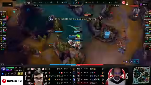 00:52:21Das Spiel beginnt mit einem aggressiven Early-Game von Kaufland, die bereits nach kurzer Zeit den First Blood holen können. Die Moderation analysiert die taktischen Entscheidungen der Teams, insbesondere den Laneswap und die Teleport-Strategie von Funky. Gleichzeitig wird die Leistung von Random, der gegen Funky spielt, kritisch gesehen, der trotz guter Positionierung unterliegt. Die Objectiv- Kontrolle liegt klar bei Kaufland, die auch den ersten Draken securen kann.