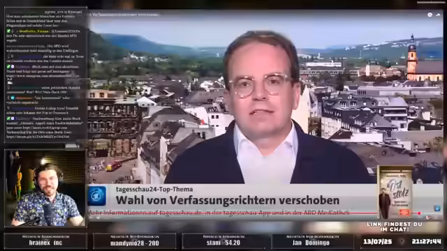 00:25:05Der Streamer berichtet über eine politische Krise im Bundestag, bei der die Wahl einer SPD-Kandidatin für das Bundesverfassungsgericht scheiterte. Die Kandidatin stand unter Verdacht der Plagiate in ihrer Doktorarbeit. Die Union verschiebt die Wahl, während es Kritik an der Vorgehensweise gibt. Der Streamer äußert die Vermutung, dass dieser Vorfall strategisch genutzt werden könnte, um von anderen politischen Skandalen abzulenken oder politische Gegner zu schwächen. Er analysiert die Auswirkungen auf die Regierungskoalition und das Vertrauen in die politische Instanzen.