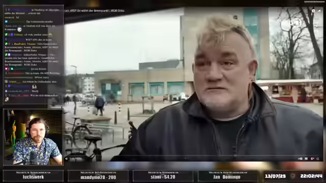 01:58:22Der Streamer analysiert die politische Stimmung und die wachsende Unterstützung für die AfD. Er stellt fest, dass Menschen, die Integration geschafft haben, oft die gleichen Vorurteile gegenüber neuen Migrantengruppen äußern wie zuvor selbst erfuhren. Es kommt zu Diskussionen über Wahlkämpfer der verschiedenen Parteien, die im Duisburger Norden unterwegs sind. Insbesondere die AfD wird dafür kritisiert, bewusst zu polarisieren und statt mit Fakten mit Gefühlen zu argumentieren.