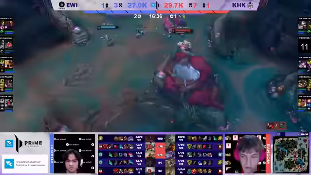 04:10:19Das Spiel eskaliert zu einer Reihe von chaotischen Teamfights, die als wilde Kneipenschlägereien beschrieben werden. Ein entscheidender Moment ist der Kampf um den Baron Nashor. EWI kann hier überzeugen: Relative spielt einen fantastischen Fight mit seiner Oriana, und Rocklo glänzt mit einem heldenhaften Manöver, das dem Team mehrere Kills und dasObjective sichert. Dieser Fight dreht das Spiel endgültig zu Gunsten von EWI, das den Draken holt und einen massiven Goldvorsprung herausarbeitet.