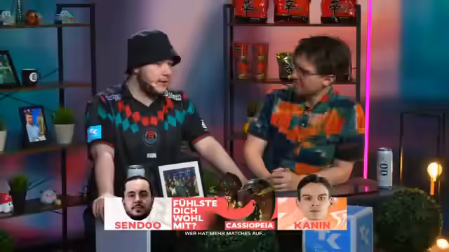 04:09:14Nach den Spielen folgt ein interaktives Segment, ein sogenanntes Spielduell, zwischen den Kommentatoren Kernos und Joka. Die Teilnehmer müssen erraten, welcher Profi aus der Prime League in seiner Karriere einen bestimmten Champion öfter gepickt hat. Es finden mehrere Duelle statt, unter anderem um die Picks von Cassiopeia, LeBlanc, Jhin und Kayn. Die Gewinnpunkte werden sorgfältig gezählt, und das Publikum sowie die kommentatoren sind live in die Statistik-Rallye eingebunden.