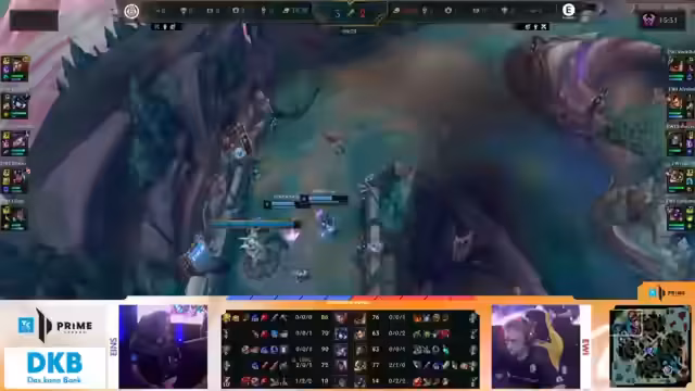 02:26:23Das Spiel wird durch eine Reihe von hektischen Teamfaktionen geprägt. Power of Evil für EWI glänzt hierbei mit mehreren Kills, während die Killverteilung bei Spandau stärker auf Power of Evil konzentriert ist. Immer wieder kommt es zu knappen Tauschgeschäften, bei denen Seiten und Objive getauscht werden. Spandau etabliert sich durch einen gewonnenen Kampf am Drachen eine kleine Gold- und Objiv-Führung, wodurch der Druck auf EWI zunimmt.