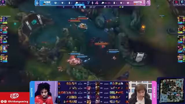 01:39:18Die Unicorns kämpfen mit massiven Problemen im Early Game. Ihnen fehlt jeglicher Setup für Jungler-Ganks, und die Trades werden von LeBlanc und Renekton kontrolliert. Simpli verliert viel Leben und die Unicorns haben kaum Kontrolle über die Karte. Trotzdem gelingt es ihnen, einen wichtigen Teamfight zu gewinnen, den Herald zu sichern und den Gold-Rückstand etwas zu verringern. Dieser Moment ist entscheidend für den weiteren Spielverlauf.