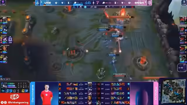 00:53:20Durch den Herald-Gewinn und erfolgreiche Picks erzielen Unicorns wichtige Kills. Besonders White (Lee Sin) und Kaiser (Alistar) erzwingen gute Teamfights. Unicorns gewinnen einen entscheidenden Kampf um den zweiten Drachen und setzen den Baron-Herald erfolgreich ein. Der Streamer ist optimistisch: „Wir sind noch im Game!“ Das Golddefizit schmilzt auf 3.000. Dennoch bleibt Heretics gefährlich durch Qiyana und Tristana. Unicorns versuchen, durch geschickte Wellenmanagement und Cross-Map-Plays Druck aufzubauen, scheitern aber an der starken Vision-Kontrolle von Heretics.