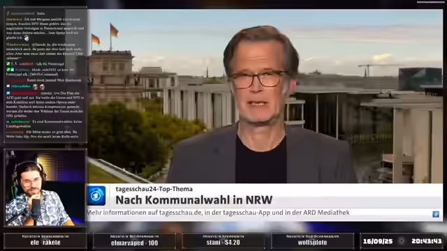 00:00:00Der Stream beginnt mit der Begrüßung der Zuschauer und einem Dank für die Genesungswünsche. Es wird über das eigene körperliche Befinden gesprochen, einschließlich einer laufenden Nase und möglichem Halskratzen. Der Streamer berichtet von Muskelkater nach dem ersten Besuch im Fitnessstudio seit sechs Wochen und dem Versuch, die gleichen Gewichte wie zuvor zu verwenden, was als dumm und ambitioniert zugleich beschrieben wird. Es wird die Frage aufgeworfen, ob die eigene Stimme bereits versagt und ob dies nur Einbildung sei. Im weiteren Verlauf wird auf das aktuelle Zweitkanal-Video eingegangen und nach einem passenden Titel gesucht, da der bisherige noch nicht zufriedenstellend ist. Vorschläge aus dem Chat, wie 'Die Jamba-Apokalypse' oder 'Das deutsche Scam-Imperium der 2000er', werden diskutiert, wobei die Schwierigkeit betont wird, einen Titel zu finden, der sowohl knackig als auch inhaltlich verständlich ist. Die Kommunalwahlen in NRW werden angesprochen, nachdem in Kommentaren ein Special dazu gefordert wurde. Die Ergebnisse der Wahlen werden aus verschiedenen Perspektiven beleuchtet, wobei CDU, SPD, AfD und Grüne unterschiedlich abschneiden und die jeweiligen Reaktionen darauf analysiert werden. Es wird festgestellt, dass die Ränder (Linke und AfD) sich freuen, was als schlechtes Zeichen für das Land interpretiert wird.