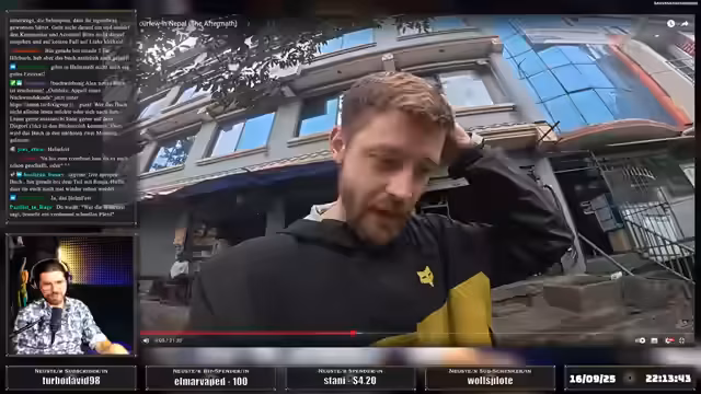 01:15:31Die Situation in Nepal eskaliert, wobei die Spannung und Ungewissheit greifbar sind. Die Proteste haben sich zurückgezogen, wodurch eine Lücke zwischen Demonstranten und Polizei entstanden ist. Einen Tag zuvor wurden 19 Menschen erschossen, was zu blutigeren Auseinandersetzungen führte. Ein Bikefluencer, der zufällig vor Ort war, streamt live und teilt seine Erfahrungen. Es wird betont, wie wichtig es ist, die eigenen Gefühle in solchen Momenten auszudrücken und die Humanität inmitten des Chaos zu bewahren. Ein Interview mit einem Briten inmitten der Unruhen zeigt die surreale Natur der Situation. Das Parlament steht in Flammen, was einige als Beweis für eine Gen-Z-Revolution sehen, da die Reaktion darauf scheinbar teilnahmslos erfolgt. Es wird spekuliert, dass China eine Rolle beim Wiederaufbau oder sogar bei der Eskalation der Situation spielen könnte. Die Zerstörung und Brandstiftung werfen Fragen nach dem Nutzen der zerstörten Ressourcen auf. Es wird betont, dass die Informationslage gering ist und man die Hintergründe nicht einschätzen kann, da man kein Nepal-Experte ist. Man realisiert in solchen Momenten, dass man Zeuge von historischen Ereignissen wird.