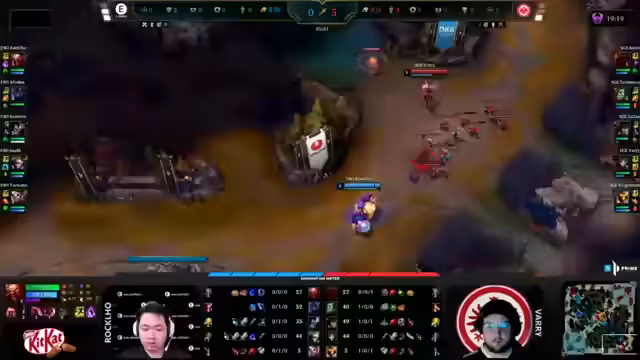 04:33:28Die Botlane entwickelte sich zu einem zentralen Schlachtfeld. Nachdem Evi den ersten Dragon genommen hatte, eskalierten die Kämpfe. Es kam zu einer Serie von riskanten Towerdives und Konterplays. Vary konnte sich mit einem cleveren Flash retten, während Zazze mit seiner Sion-Ulti versuchte, den Angriff von Evi zu stoppen. Beide Teams hooken sich gegenseitig, was zu einem absoluten Gemetzel führte. Obwohl Evi in der Kill-Führung lag, blieb der Goldvorsprung minimal, was das Spiel weiterhin offen und unvorhersehbar gestaltete.