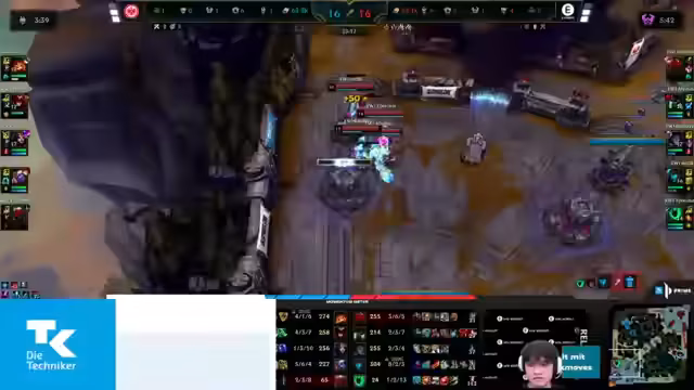 02:56:48Die Mitte des Spiels verläuft ruhiger, doch der Fokus liegt auf dem Gold-Advantage. Frankfurt versucht, Caitlyn einen Vorteil zu verschaffen, um ihre Win-Condition zu aktivieren. Die Seraphine skaliert gut und die Kontrolle der Jungle-Region ist entscheidend. Ein entscheidender Teamfight ereignet sich am Herald, der ungenutzt auf der Map steht. Evi agiert hier koordinierter und führt einen erfolgreichen Anzug an, der in einem klaren Sieg und mehreren Kill endet. Das Score steht 20 zu 6 für Evi und die Kontrolle über das Spiel hat komplett gewechselt.
