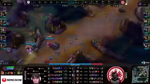 01:24:15Der Rumble wird als zu wenig beachtet kritisiert, da er im Teamfight fast unberührt bleibt und am Ende noch Flash zur Verfügung hat. EWI geht zu tief in die Kämpfe und sollte sich auf Front-to-Back-Kämpfe konzentrieren. Afroboy könnte den AD-Carry alleine ausschalten. Der Varus ist nicht mehr das primäre Ziel und der Corki macht mehr Schaden. Der Fokus sollte auf der gegnerischen Frontline liegen. Workflow wird sofort engagiert und Sase sichert sich einen Shutdown. EWI muss den Rumble endlich fokussieren, da er sehr verwundbar ist. Varys Ultimates sind stark, aber Rok'lo unterschätzt seine eigene Verwundbarkeit. Beide Teams wollen ein langes Spiel. Das Spiel ist ausgeglichen, aber Relative muss auf sein Positioning achten. Der Baron ist in der Nähe und EWI könnte die Taliyah-Wall nutzen. Frankfurt sichert sich einen ungestörten Baron, da EWI disconnected wirkt. Eintracht Frankfurt initiiert die Engages und nimmt den gegnerischen Carry heraus. Der Atakan wird bereit für den Elder Dragon sein. Rells Engage nimmt drei Gegner für vier Sekunden aus dem Spiel, was den Kill von Cho'Gath ermöglicht. Eintracht Frankfurt plant einen 2v1 auf der Toplane. Magitti findet einen Engage auf den Varus. Vary sichert sich einen Doppelkill und Zarze holt Rok'lo. Eintracht Frankfurt versucht, die Base aufzubrechen und das Spiel zu beenden. Sarko und Tekko-Tekko nehmen den Azir aus dem Spiel. Relative wird sofort gefangen und Eintracht Frankfurt beendet das Spiel mit dem Atakan und dem Baron-Buff.