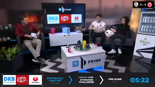 02:30:19Nach dem Spiel richtet der Kommentator eine "Atakan-Challenge" mit Eintracht Frankfurt aus. Das Team versucht, einen neuen Rekord aufzustellen, scheitert jedoch bei der Ausführung und ist das erste Team, das die Challenge verfehlt. Trotz des Mißerfolgs wird die Erfahrung als lustig und unterhaltsam für die Zuschauer beschrieben. Der Host reflektiert über die gescheiterte Exekution und scherzt über den "Mastermind" hinter dem Vorhaben, bevor er zum nächsten Segment übergeht.