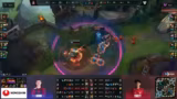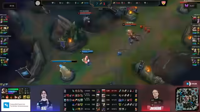 04:01:03Nach mehreren erfolglosen Versuchen der VfB, den Fight zu initiieren, kommt es zu einer massiven Konfrontation. Zagok greift an, aber sein Timing ist schlecht. Die CC-Chain von Spandau, bestehend aus Flash, Knock-Up und Galio-Ulti, hält Power of Evil aus dem Spiel. Der Fokus auf Orianna und die Nafiri der VfB zahlt sich aus. Spandau nutzt die verbliebene AD-Stärke von Sargog und Jenix, um Front- und Backline zu eliminieren und den Teamfight klar für sich zu entscheiden. Diese Aktion sichert den vierten Sieg im Spring Split und cementiert ihre Position an der Spitze der Tabelle.