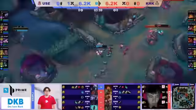 04:06:34Nachdem der letzte Drake aufgegeben wurde, erhöht der Druck auf Kaufmanblich, der den Flip verloren hat. Die Unicorns nutzen diese Situation aus, setzen einen Stun und eliminieren Random. Über mehrere Minuten hinweg bauen sie ihren Vorteil aus, während KHK Schwierigkeiten hat, auf die Power Spikes zu reagieren. Die Unicorns zeigen mehrfach ihre verbesserte Positionierung und koordinierten Fights, was ihnen letztendlich die Früchte ihres spielerischen Aufschwungs einbringt.