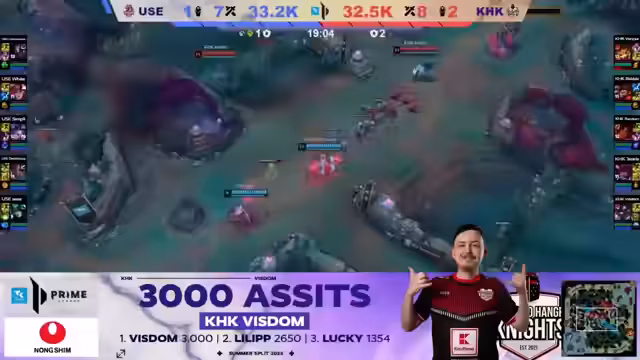 04:47:30Im Mittelspiel entscheidet sich die Partie durch mehrere wichtige Teamfights. Random von KHK zeigt eine herausragende Performance mit mehreren Kills, während Simpli von den Unicorns seine Lane-Dominanz aufrechterhält. Die Teams kämpfen um die Kontrolle über Schlüsselobjektive wie den Herald und den nächsten Drachen, wobei strategische Rotationen und Positionierung eine entscheidende Rolle spielen. Beide Teams demonstrieren hohe mechanische Fähigkeiten, aber die Unicorns behalten die Oberhand aufgrund ihrer koordinierteren Fights.