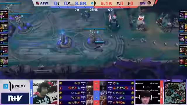 01:15:28Zwischen 45-52 Minuten erleben wir eine Phase chaotischer Kämpfe. EWI gewinnt mehrere wichtige Fights durch taktisches Vorgehen und kann so ihre Drachen führen ausbauen. AFW zeigt jedoch beeindruckende Comebacks, besonders durch Afroboys Performances. Das Spiel bleibt unvorhersehbar, da beide Teams ständig ihre Taktiken ändern.