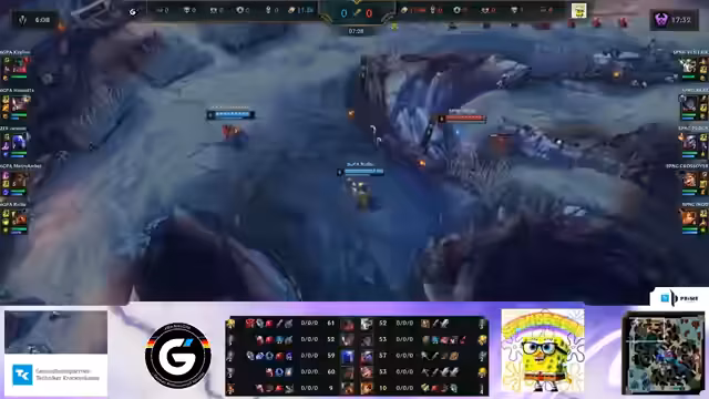 00:37:02Nach dem Ladebildschirm beginnt Game 1 zwischen 6GPA und Spongecord. Der Gewinner bleibt im Upper Bracket, der Verlierer fällt ins Lower Bracket. Alle Informationen dazu sind auf der Prime League Webseite verfügbar. Das Spiel findet auf der Snow Day Showdown Map statt, die zum ersten Mal in dieser Saison genutzt wird und mit vielen kleinen Gimmicks und einem besonderen Wintercharme versehen ist. Riot Games hat sich viel Mühe gegeben, obwohl die globale Veröffentlichung bedeutet, dass Spieler in Australien die Wintermap im Hochsommer erleben. Im Early Game zeigt Vladimir seine Stärke, und Ahri muss vorsichtig sein. Kleinere Duelle entwickeln sich auf den Lanes, aber beide Jungler clearen zunächst entspannt. Am besten zieht im frühen Match-Up gegen Sion den Kürzeren. Ein erster Versuch eines Ganks von Ornn und Ambessa auf der Bot-Lane wird von Hamoudis mit einem Counter-Gank beantwortet, was zum First Blood für 6GPA führt. Trotzdem gelingt Spongecord ein gutes Play mit zwei Grubbys, was sie wieder nach vorne bringt. 6GPA sichert sich den ersten Drake, während Grubbys generell einen höheren Wert haben als der erste Drake, da sie konstanten Push-Druck erzeugen.