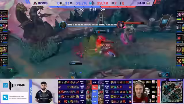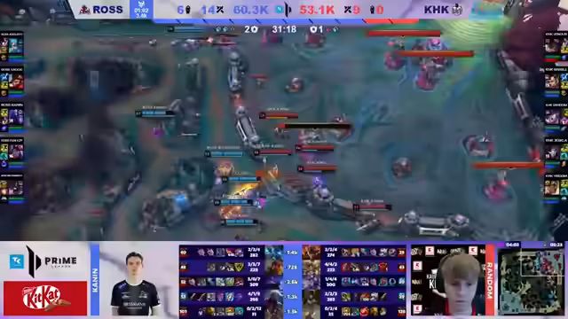 01:19:10Das Spiel kulminiert in einem umkämpften Baron-Play. Rossmann nutzt seinen Goldvorteil, um die Kontrolle über die Map zu sichern und den Nashor zu attackieren. KHK muss nun riskieren, den Fight zu initiieren, um das Spiel zu wenden. Trotz anfänglichem Erfolg wird der Baron-Versuch durch einen Fehlschlag beendet. Die Analysten sehen in diesem Moment die Kombination aus überlegenen Items und der besseren Team-Koordination von Rossmann als den ausschlaggebenden Faktor für den Sieg.