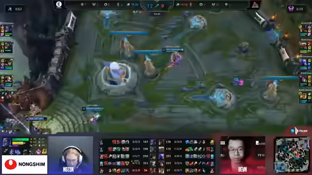 02:55:35Evi nutzt den Drachen und die hohen Death-Timer der Rossmann-Spieler, um den finalen Teamfight zu initiieren. Nost2i von Evi dominiert den Fight und sichert sich einen Triple-Kill. Pasu versucht vergeblich, das Penta zu verhindern, aber der Inhibitor von Rossmann fällt. Mit diesem Sieg hat Evi das Spiel klar für sich entschieden und die Rossmann Centaur als schwächeres Team identifiziert.