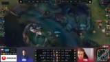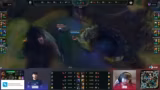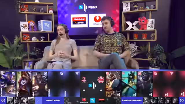 04:18:42Das Spiel beginnt mit einem sehr vorsichtigen Early-Game, auf beiden Seiten wird wenig gewagt. Ein Fokus liegt auf der Bot-Lane, wo ein Match-up zwischen Yone/Lulu und Varus/Nami stattfindet. Die Kommentatoren bemerken eine auffällige Tendenz, dass die Spieler heute bewusst mehr Licht anhaben, gestern jedoch ohne spielten. Ein langes Interview des Kommentators Miele wird humorvoll als „schlimmer als der Karriere-Flame gestern“ beschrieben, was zu viel Gelächter im Chat führt. Insgesamt herrscht eine lockere, aber fokussierte Atmosphäre, da das letzte Spiel des Tages beginnt und die Zuschauer gespannt sind.