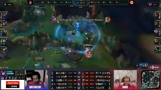 03:36:06Jakob Bobby von VfB zeigt eine exzellente Performance und sichert sich mehrere Kills. Mit einem Triple Kill in einer kritischen Situation nimmt er das Spiel vollständig in die Hand. Trotzdem kämpft VfB weiterhin um die Kontrolle über das Spiel, während TOG versucht, den Vorteil auf der Map auszuspielen und den nächsten Drake zu sichern.