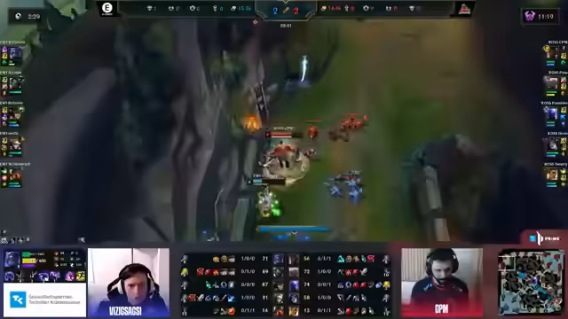 00:37:37Das erste Spiel beginnt mit einem klaren Frühdruck von Eintracht Spandau. Eine aggressive Aktion im Jungle führt zum First Blood für Spandau, was den schwachen Start für Rossmann unterstreicht. Das Team kämpft mit einem Draft, der einfacher zu executieren erscheint, aber spielerisch überfordert ist. Die passive Herangehensweise Rossmanns wird in der frühen Phase bestraft und ermöglicht es Spandau, eine signifikante Gold- und Map-Kontrolle zu etablieren, was den Weg ebnet für einen klaren Sieg.