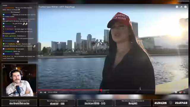 00:12:27Der Stream beginnt mit einem Kommentar zum Ukraine-Krieg und der Erwähnung von Donald Trumps Amtszeit. Es wird ein Überblick über Memes und die Möglichkeit gegeben, sich Trumps Antrittsrede anzusehen. Der Streamer bedankt sich für die Unterstützung und geht auf Zuschauerfragen ein, unter anderem zu Magic-Decks und Elon Musk. Es wird angekündigt, dass am Dienstag kein Stream stattfinden kann, da ein Außendreh für ein Wahlprojekt ansteht, voraussichtlich am 17.02. veröffentlicht wird. Es folgen erste Eindrücke von Trumps Amtseinführung, wobei die Kälte und die Verlegung in eine Eishockey-Arena thematisiert werden. Es wird spekuliert, ob die Verlegung wetterbedingt oder aus Sicherheitsgründen erfolgte, und auf die Anwesenheit von Trump auf seinem Golfplatz mit Feuerwerk eingegangen. Der Streamer erwähnt ein Meta-Video zu der Thematik, das am Sonntag erscheinen soll.