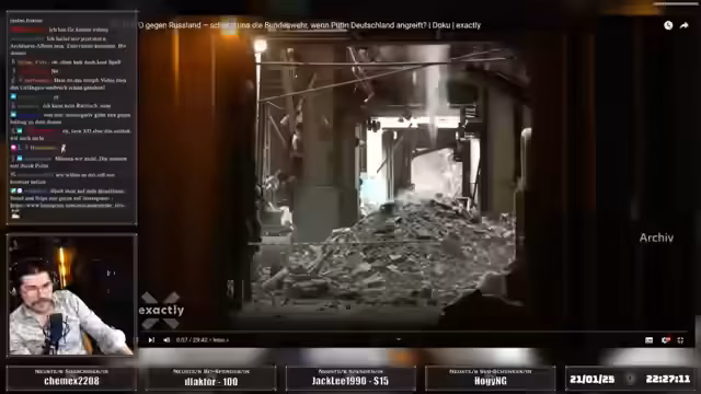 02:19:54Der Stream thematisiert die anhaltenden russischen Luftangriffe auf die ukrainische Energieinfrastruktur, die zu großflächigen Stromausfällen führen. Es werden Bedenken geäußert, ob die deutsche Infrastruktur ebenfalls betroffen sein könnte. Die darauffolgende Diskussion konzentriert sich auf die russische Bedrohung und die Fähigkeit Deutschlands, sich dagegen zu verteidigen. Der Streamer kritisiert Stimmen, die behaupten, die Demokratie werde durch Proteste gefährdet, und betont den Aufruf zu mehr Engagement für den Schutz der Heimat, mit einem konkreten Appell für 10 Milliarden Euro Sondervermögen für den Zivilschutz.