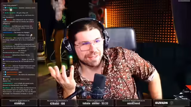 01:10:27Die USA und Israel führen Luftangriffe auf die iranische Führung, was die Situation im Nahen Osten eskalieren lässt. US-Präsident Donald Trump verkündet, die Offensive solle den Iranern die Chance geben, ihre Regierung zu stürzen. Der Streamer sieht dies sehr kritisch, da es zu einem befürchteten Eingreifen der USA führen und die Stimme des iranischen Volkes übergangen werden könnte. Es besteht die große Sorge, dass die USA versuchen könnten, eine Marionettenregierung unter der alten Pahlavi-Dynastie zu installieren, was einen langen Weg zu echter Demokratie versperren würde.