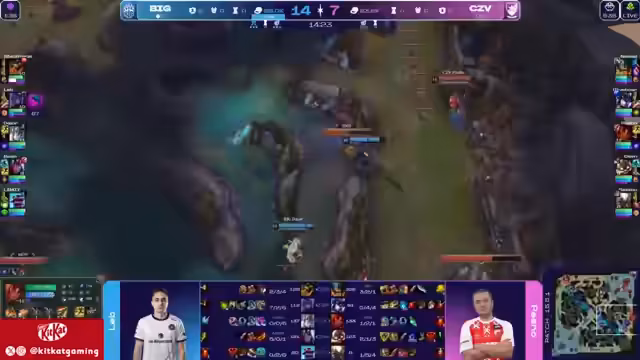 03:12:22Relative ist mit einer 5-1-0 Statistik dick im Saft und zeigt beeindruckende Leistung. Trotzdem macht der Infinity Edge bei Millionen Angst, was zeigt, wie wichtig Items für den Spielfluss sind. Clarisse zeigt starkes Spiel, indem er immer als hätte er drei Leute hinter sich spielt und dadurch Druck erzeugt. Dies nutzt er, um durch Fog of War Vorteile zu erzielen.