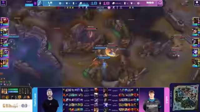 02:01:50Im späten Spiel konzentrieren sich beide Teams auf die Kontrolle wichtiger Objekte wie Dragon und Grubis. Nightbirds zeigt beeindruckende Comeback-Fähigkeiten, insbesondere Vel'Koz, der die Flagge von Los Ratonis oben hält. Die Teams müssen strategische Entscheidungen darüber treffen, wann es sich lohnt, in bestimmte Trades einzusteigen. Gleichzeitig gibt es technische Probleme bei der Übertragung, was zu Verzögerungen führt. Die Kommentatoren stellen die Leistung der Spieler in den Mittelpunkt und bewerten, wer die Oberhand in den entscheidenden Momenten hat.