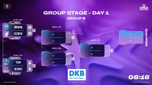 Die EMEA Masters Winter 2025, ausgerichtet von der Prime League, verlief am ersten Tag ohne große Überraschungen. Lost Ratonis setzte sich gegen Nightbirds mit 2:0 durch und konnte dabei überzeugende Teamleistung zeigen. Big dominierte ebenfalls und bezwang Roter Stern Belgrad deutlich. KC Blue gewann gegen EWI ebenfalls mit 2:0. Das Double Elimination-Format, bei dem Teams zwei Niederlagen hinnehmen können, verspricht weitere spannende Entwicklungen.