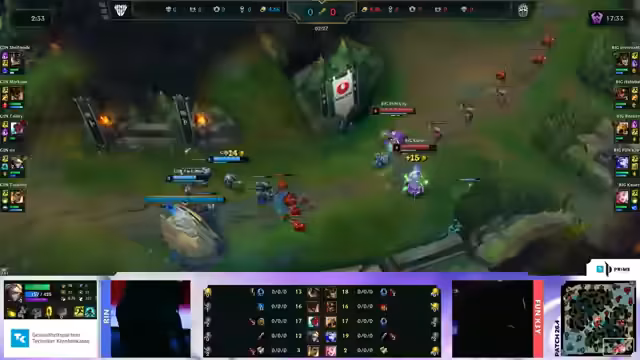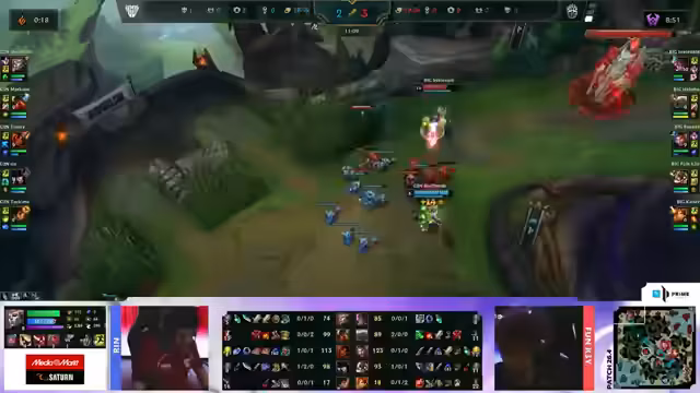 05:40:58Nach einer anfangs sehr passiven Phase, in der keine Ziele (Objectives) besetzt wurden, erzwingt Big endlich das erste Spielziel mit dem ersten Drachen in Minute 11. Dieser langsame Start unterstreicht die taktische Stärke von Big, die Geduld bewahrt und dann aktiv wird. Die Bot-Lane von Big, zuvor kritisiert, spielt jetzt konsequent aggressiv und ist in der Lage, Kills zu sammeln und Druck auszuüben. Dieser Spielaufbau mit einer gezielten, aggressiven Strategie nach dem ersten Objective zementiert die Führung von Big, die nun voll in der Kontrolle des Spiels ist.