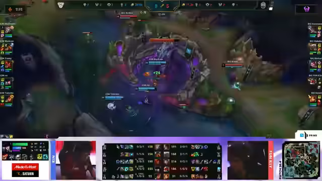 03:06:33G2 Nord ist durch den massiven Goldrückstand und das Verlassen wichtiger Objektive wie des ersten Turms in eine aussichtslose Position geraten. BIG kontrolliert das Spiel nach Belieben und sichert sich den dritten Drake und den Herald, um den Druck aufrechtzuerhalten. Trotz G2 Nords verzweifelten Versuchen, in einem letzten Fight zurückzukehren, fehlt es ihnen an Ressourcen und Koordination. BIG überrollt das Gegner Team, eliminiert alle Mitglieder und entscheidet das erste Spiel des Grand Finals souverän zu ihren Gunsten. Die Analysten loben insbesondere die systematische und fehlerfreie Leistung von BIG.
