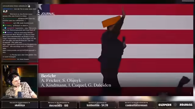 00:10:39Der Stream beginnt mit gesundheitlichen Problemen, da eine Fischvergiftung auskuriert wird, was die Energie beeinflusst. Trotzdem wird der Wunsch betont, die Zuschauer nicht zu enttäuschen. Es folgt eine Reflexion über die Wertschätzung des eigenen Körpers im gesunden Zustand. Der Streamer teilt mit, dass er sich von Arbeit ferngehalten hat, um sich zu erholen. Es wird die Nachricht über Marine Le Pen erwähnt, die positiv aufgenommen wird. Es gibt Hoffnung, dass Le Pen Macron in Frankreich nicht beerben kann, auch wenn der Front National möglicherweise die nächste Wahl gewinnt. Der Streamer kündigt an, sich später mit dieser Thematik auseinanderzusetzen. Es wird kurz auf den 1. April eingegangen und die Entscheidung erläutert, keine Aprilscherze zu machen, da diese im heutigen Kontext der Realität, in der man sich ständig fragt, ob etwas ein Scherz ist, nicht mehr zeitgemäß erscheinen. Trump wird als Beispiel genannt, der mit der Aussage einer dritten Amtszeit provoziert.