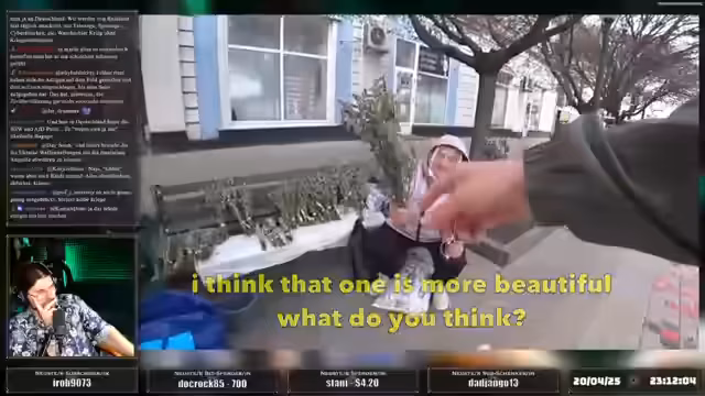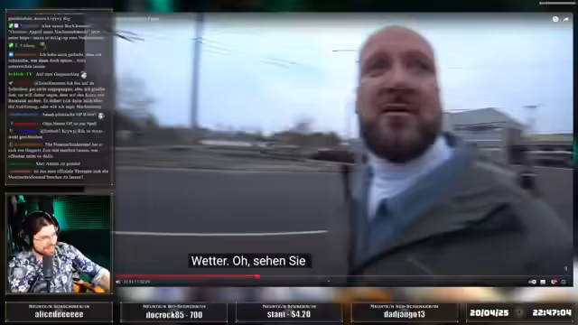 01:41:28Der Stream beginnt mit der persönlichen Geschichte von Artem, der nach vier Monaten im Krankenhaus aufgrund einer Infektion sein Bein amputieren lassen musste. Eine Prothese, finanziert durch einen Spender, ermöglichte ihm ein fast normales Leben und machte Aktivitäten wie Rennen, Springen und Klettern möglich. Artem, der in Kiew eine Tochter hat, flüchtete später nach Aachen, als sein Vater an Krebs starb und seine Frau sich von ihm scheiden ließ. Sein Ziel ist es, unabhängig vom Staat zu leben, da er in der Ukraine mit einer Behinderung kaum Chancen auf gute Arbeit hat. Er fühlt sich in Deutschland als normaler Mensch an, was er in der Ukraine nicht erlebte.