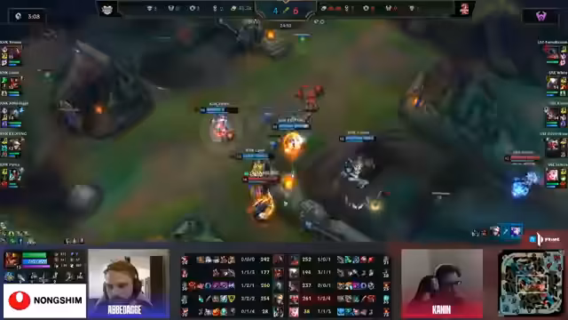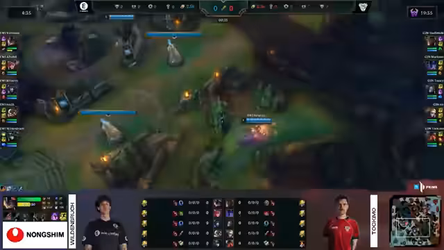 02:40:15Das Spiel beginnt und es zeigt sich eine sehr aktive und aggressive Botlane sowohl bei EWI als auch bei G2 Nord. Die beiden Jungler, Afro Boy für EWI und Makun für G2 Nord, sind gefordert, ihre Lanes zu unterstützen. Makun entscheidet sich für einen frühen Gank, der jedoch scheitert, da Rin isoliert stirbt. Afro Boy nutzt dies und startet einen erfolgreichen Gank auf der Botlane, was zum First Blood für EWI führt. Nostukei opfert sich dabei, was ein klares Zeichen für die Priorität zeigt, die Rin für die Botlane hat.