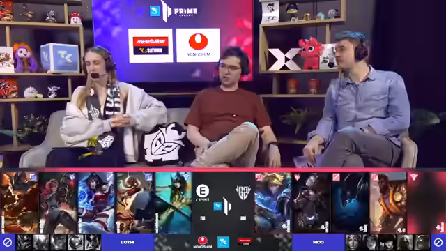 02:56:24Ein Fokus liegt auf den Leistungen der Spieler, insbesondere auf Rin. Er wird als einer der herausragenden Spieler im Spiel bezeichnet, dessen aggressive Spielweise zwar Früchte trägt, aber auch anfällig für Gegenangriffe ist. Sein Championpool wurde stark erweitert, doch bleibt er mit Kassadin ein 'bread and butter' Champion. Die Performance des Top-Laners Schafi wird ebenfalls kritisch hinterfragt, da er in der Laning Phase verliert, aber durch den Champion Rumble im späteren Spielverlauf noch Potenzial hat.