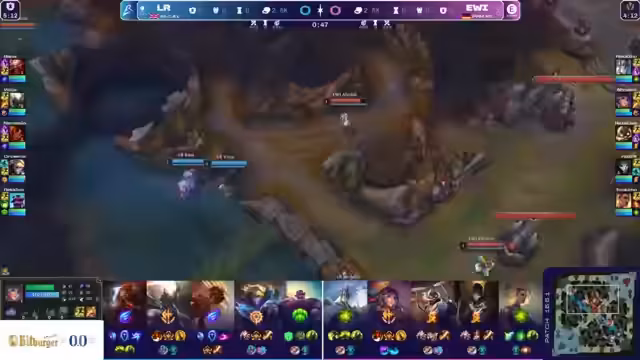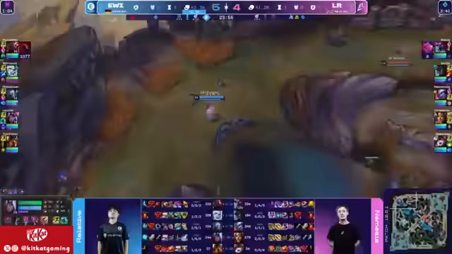 04:57:12Obwohl EWI durch das starke Play von Rocklo kurzzeitig ins Spiel kam, kann der Aufholversuch letztlich nicht gelingen. Los Ratones behält die Oberhand, insbesondere durch den Dominanz des gegnerischen AD-Carrys Bows. Die Fehler von EWI in den Teamfights, wie die fehlende Arealkontrolle und die nicht optimalen Gruppierungen, führen dazu, dass der Goldvorsprung von Los Ratones auf 2300 Gold anwächst. Das Spiel droht zu kippen.