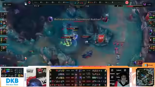 04:55:15Mit dem starken Vorteil des Elder Dragons startet Austrian Force den finalen Angriff auf die Nexus von Frankfurt. Nach einem erfolgreichen Nexus-Tower Push gelingt es Frankfurt jedoch, zurückzuschlagen und die Gegner zu eliminieren. Sie nutzen die Gelegenheit, um selbst den Nexus zu zerstören und das Spiel mit 2 zu 1 für sich zu entscheiden. Sieg bedeutet für Frankfurt den achten Tabellenplatz, während Austrian Force trotz des ersten Sieges vorerst auf dem zehnten und letzten Platz verbleibt.