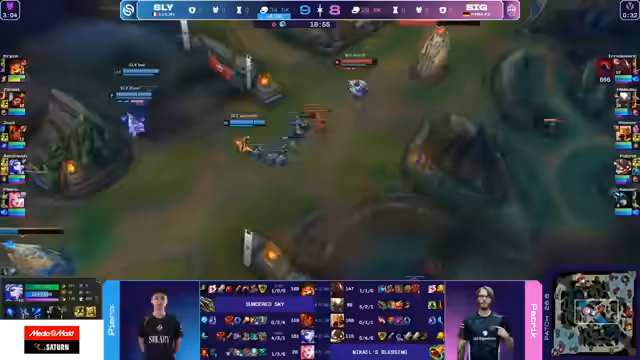 03:16:46Zu Beginn der Partie wird die strategische Ausrichtung der Teams analysiert. Solari scheint einen defensiveren Ansatz zu verfolgen, bis ihre Carries ihre Items haben. Der Analyst bewertet die Picks beider Seiten: Solari hat gute Picks, die es Big schwer machen, das Ziel zu erreichen, während Big aggresiver spielen muss, um nicht zu früh ins Hintertreffen zu geraten. Die Verantwortung liegt auf Abubu, der mit Jarvan sehr starke, aber auch immobile Picks für die gegnerischen Carries gewählt hat.